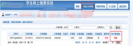 (4)缴费成功后,可通过搜索查询交易记录、明细,可查询、打印电子发票。