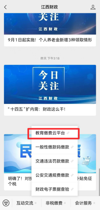 3.通过江西省财政厅微信公众号教育缴费