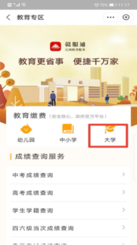(2)点击“学费缴纳”进入“大学”。